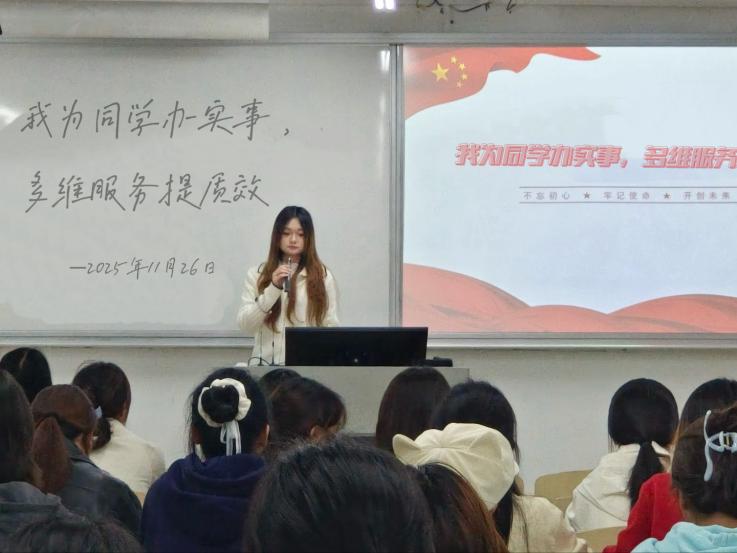 为深入贯彻落实校团委关于服务同学、提升组织效能的培训精神,推动“我为同学做实事,多维服务提质效”实践活动走深走实,2025年11月26日,会计学院分团委学生会组织召开专题培训会,会议围绕如何“为同学做实事”、网络舆情应对处理、心理健康等方面展开系统讲解。会计学院分团委学生会全体成员参加了会议,会议由主席团成员龚诗宇主持。