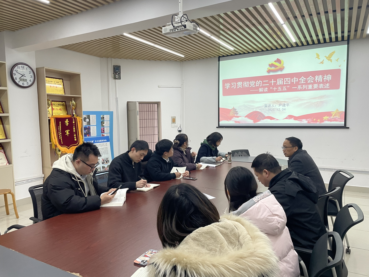 会议首先围绕中国共产党二十届四中全会的基本情况与时代意义展开学习。尹建平同志指出,此次全会是在“十四五”规划即将收官、“十五五”规划谋篇布局的关键阶段召开的一次重要会议,系统谋划了我国未来五年经济社会发展的宏伟蓝图,为全面建设社会主义现代化国家指明了前进方向、提供了行动纲领。