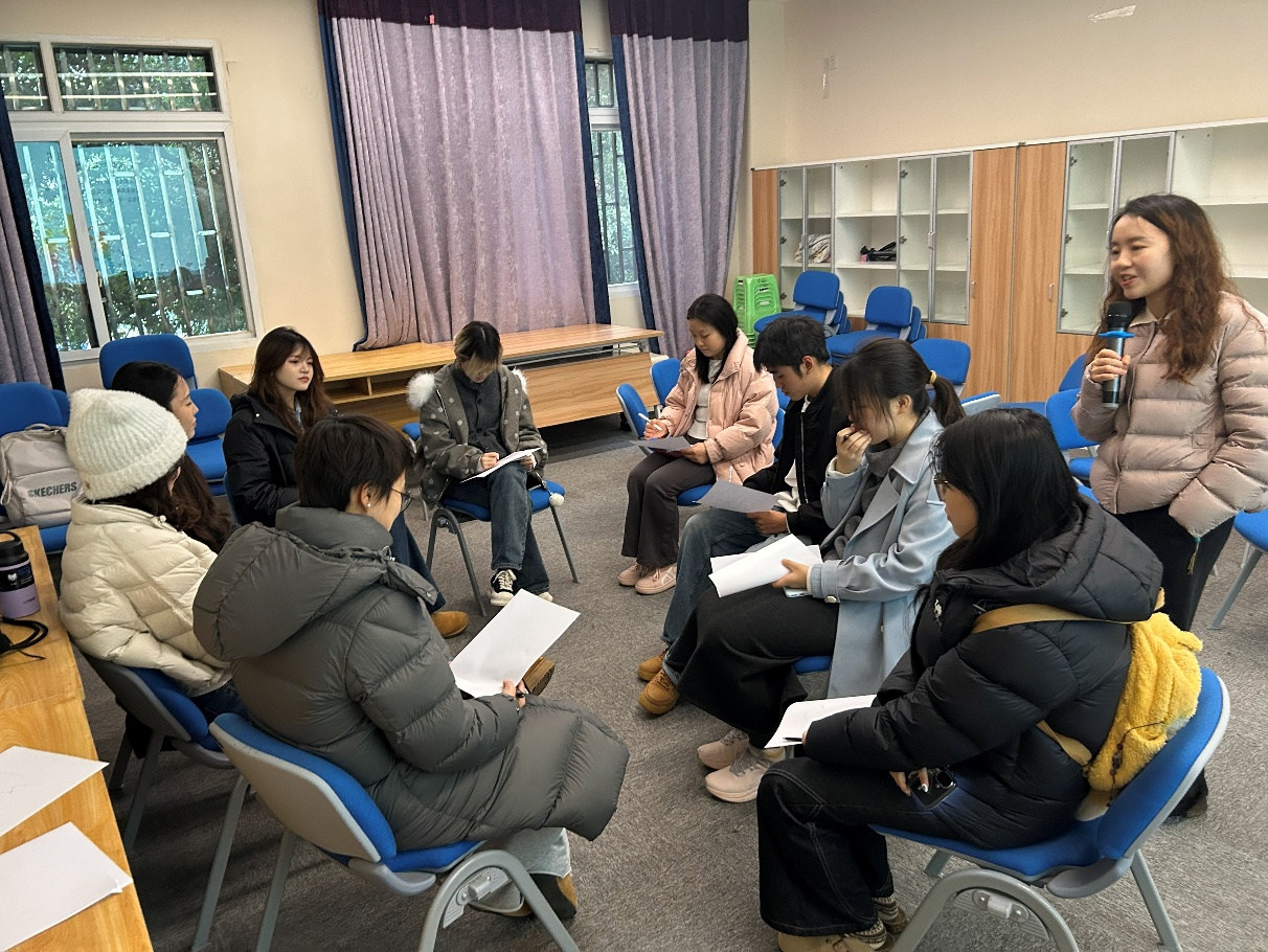分享与共鸣,是本次团体辅导的高光篇章。完成前两个环节后,同学们转向身旁的伙伴说出真诚的话语。“我看到了你眼里的火焰”“你的故事给了我力量”“我十分欣赏你的个性”……个体叙事汇成集体共鸣,人与人之间的屏障在此消融。一句句真挚的夸赞,一声声温暖的鼓励,不仅在两两之间传递着力量,更在整个团体中汇成了一股暖流。大家在彼此的故事里看见自己,在相互的支持中汲取勇气,深刻体会到成长之路并非孤身前行。