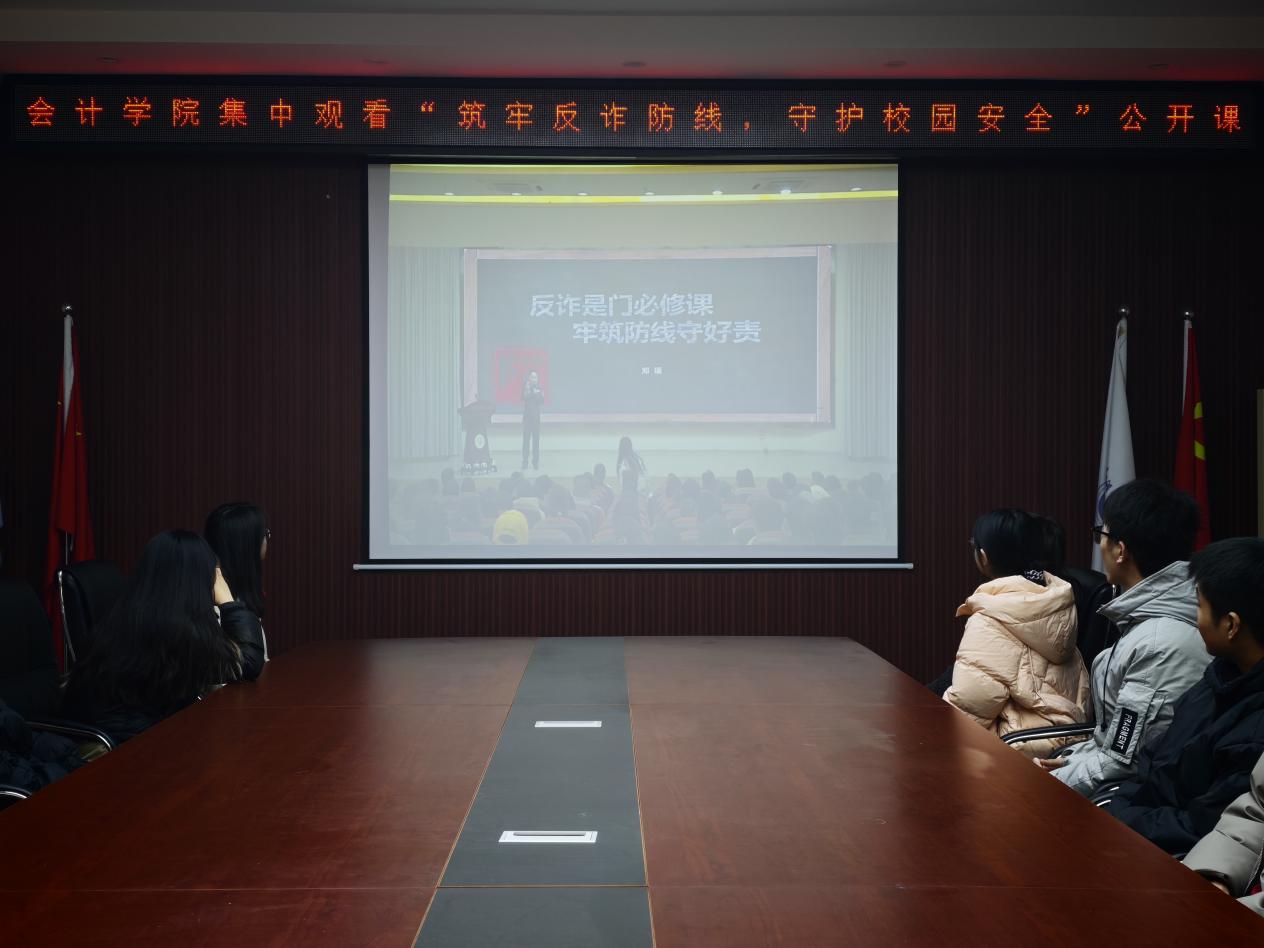 此次反诈公开课的开展,是会计学院落实校园安全教育的重要举措,有效弥补了学生在反诈防骗知识上的短板,进一步增强了全院学生的风险防范意识和自我保护能力。下一步,会计学院将持续推进反诈宣传教育常态化,通过多种形式普及防骗知识,全力守护学生财产安全与校园和谐稳定,为学生健康成长保驾护航。
