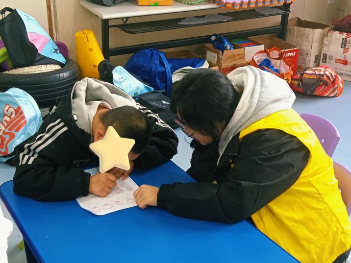 另一组志愿者走进课堂担任助教,协助老师开展丰富的教学活动。志愿者们与孩子们围坐一圈,耐心开展基础写字教学,手把手指导孩子们握笔、运笔,帮助他们打下书写基础;绘画环节中,志愿者鼓励孩子们拿起画笔描绘心中色彩,小动物、志愿者笑脸跃然纸上,每一幅作品都满含童真与想象。音乐课堂更是充满欢乐,志愿者们带领孩子们学唱《生日歌》《宝贝宝贝》两首歌曲,用轻快的旋律、温柔的歌声传递美好;同时还开展口风琴教学,手把手教孩子们认识按键、吹奏简单旋律,让孩子们在音乐中感受快乐、收获成长。在志愿者的全程夸赞与鼓励中,孩子们的脸上始终绽放着自信的笑容。