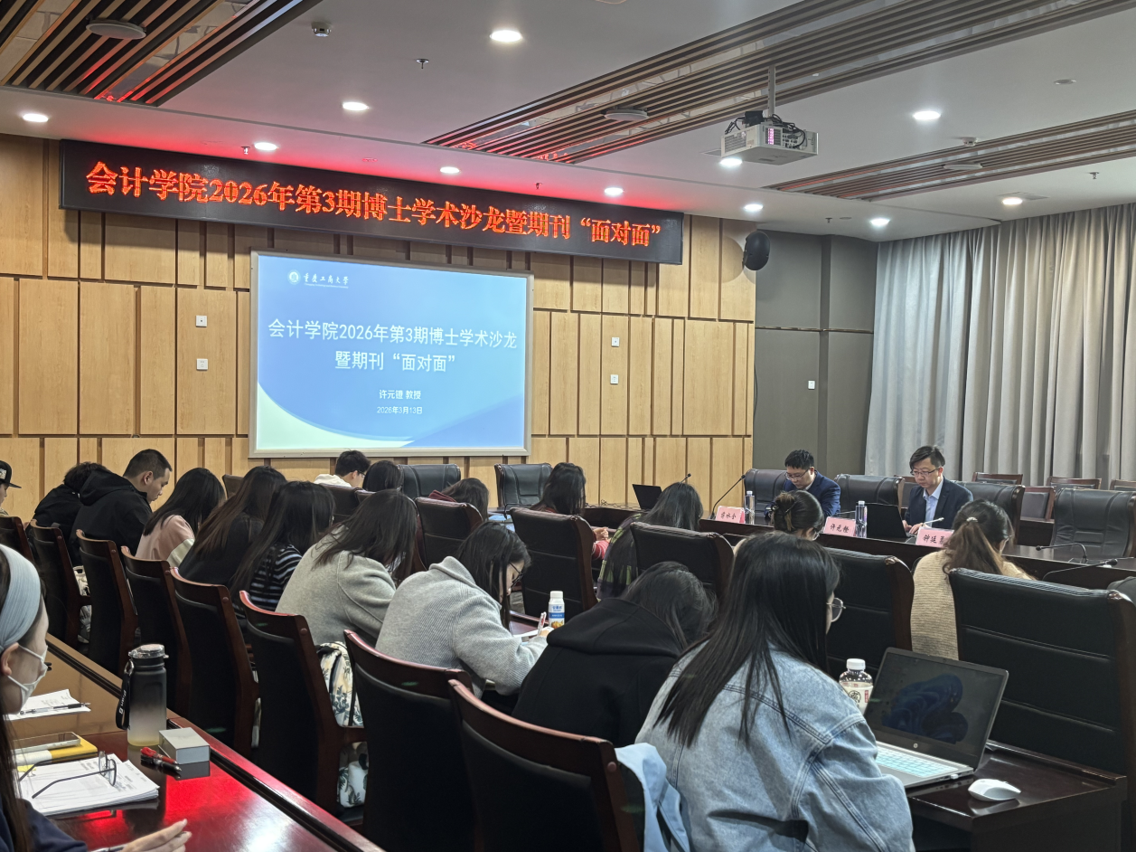 为夯实会计学科研究基础、拓宽研究生学术视野,2026年3月13日下午,会计学院第3期博士学术沙龙暨期刊“面对面”在图书馆五会议室顺利举行。本次沙龙由会计学院院长钟廷勇教授、会计学院副院长蒋水全教授共同主持,学院博士研究生及硕士研究生共同参加。