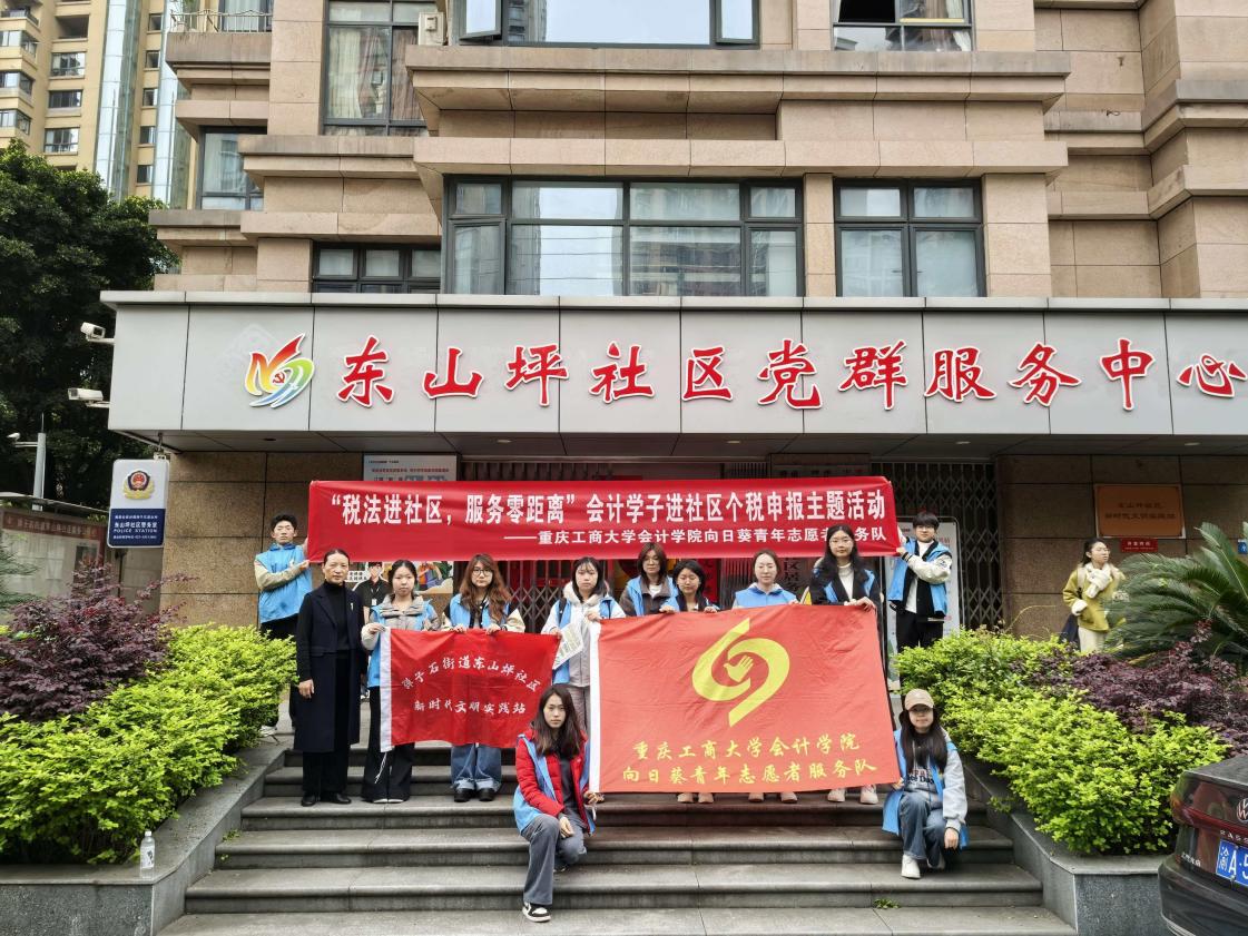 在全国个税年度汇算清缴工作全面开展之际,为进一步普及税法知识,提升社区居民依法纳税意识与办税能力,2025年3月20日,在重庆工商大学会计学院专业教师王成敬的带队指导下,会计学院向日葵青年志愿者服务队走进重庆市南岸区弹子石街道东山坪社区,开展“税法进社区,服务零距离”个税申报进社区活动。