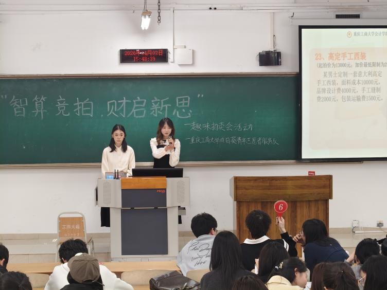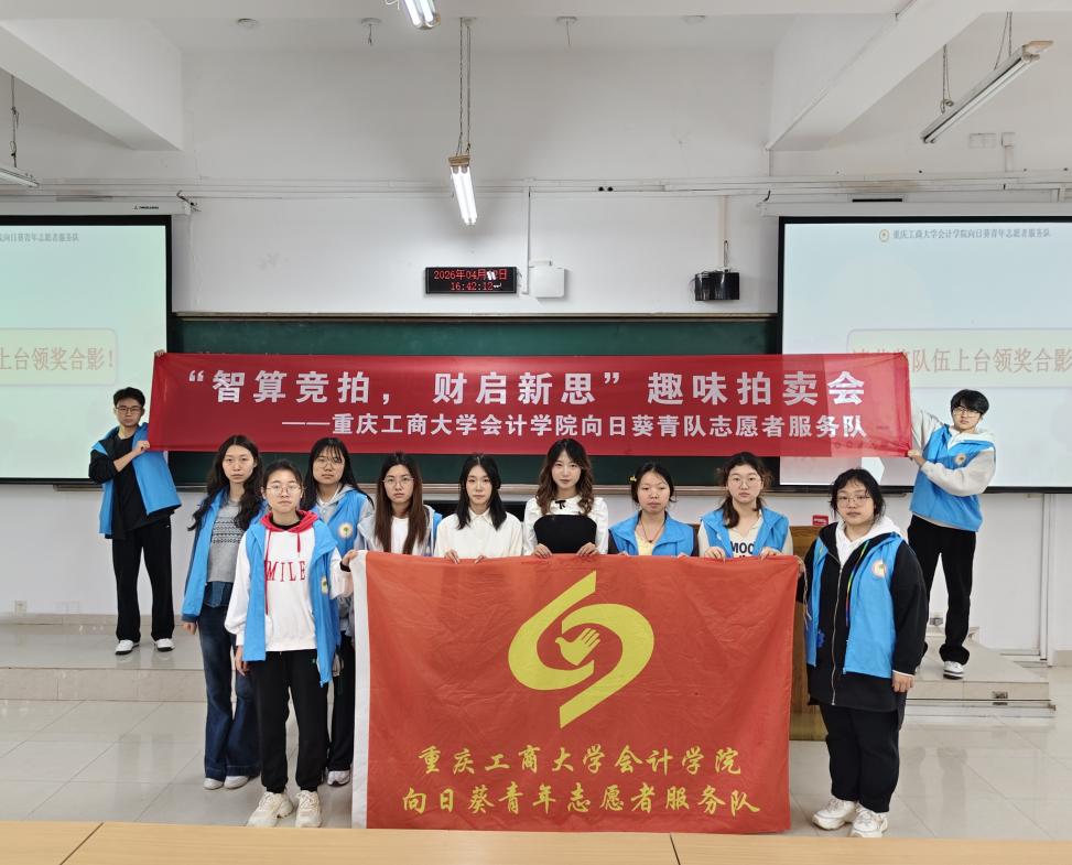 为破解财会专业理论学习枯燥难题,将资产评估、资金核算等核心专业知识与实践深度融合,提升学子实操与决策素养,2026年4月2日,重庆工商大学会计学院向日葵青年志愿者服务队于南岸校区博智楼07222教室,成功举办“智算竞拍,财启新思”趣味拍卖会。全校60名同学组队参与,在趣味比拼中活用专业知识,尽显重工商学子风采。