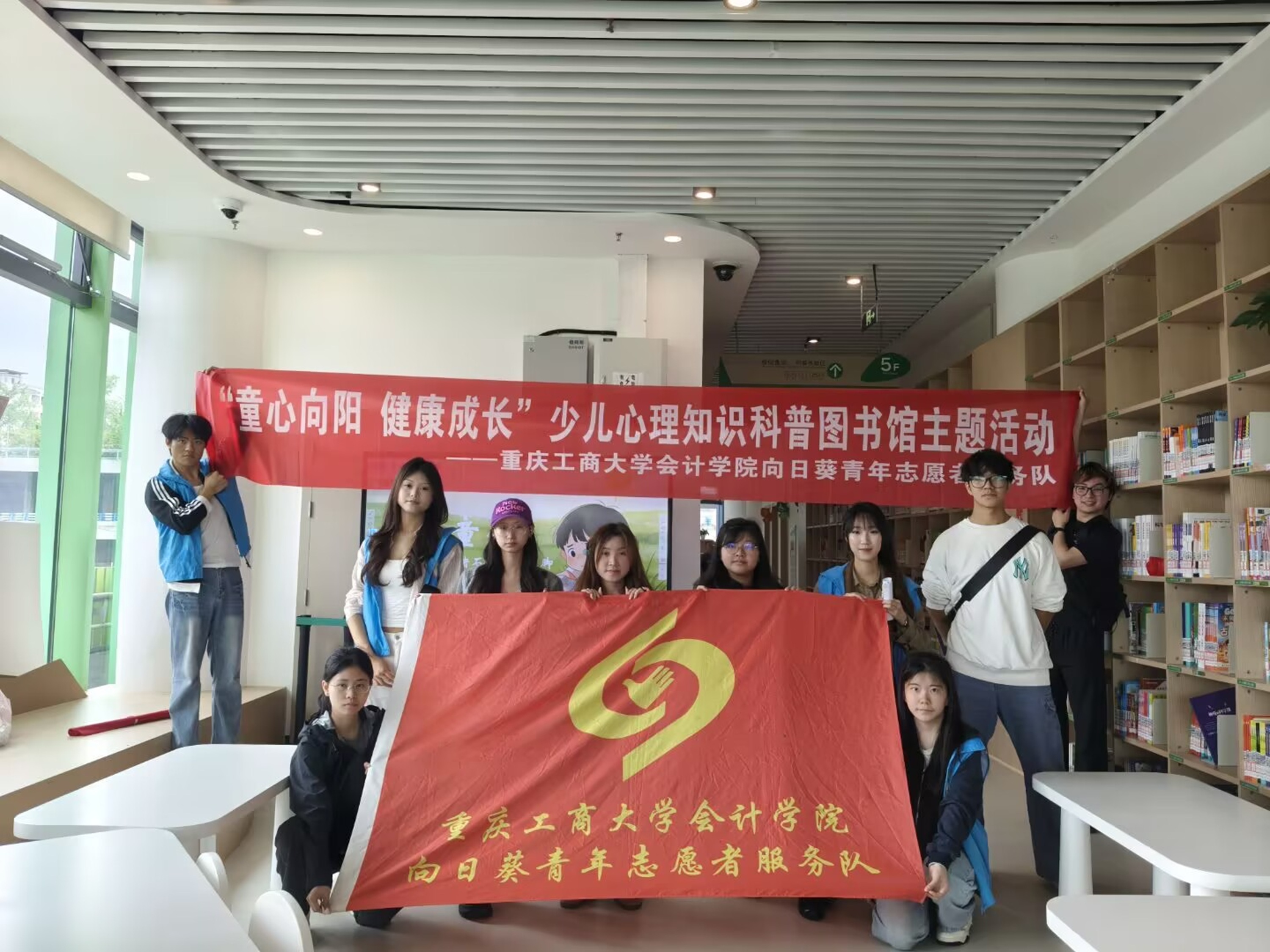 为深入落实立德树人根本任务,加强少年儿童心理健康教育,传承红色文化基因,2026年4月12日,重庆工商大学会计学院向日葵青年志愿者服务队走进重庆市少年儿童图书馆,成功举办“童心向阳,健康成长”少儿心理知识科普图书馆主题活动。本次活动将红色教育与心理科普有机融合,以生动形式引导少年儿童科学认识情绪、掌握情绪管理技巧,护航青少年身心健康成长。