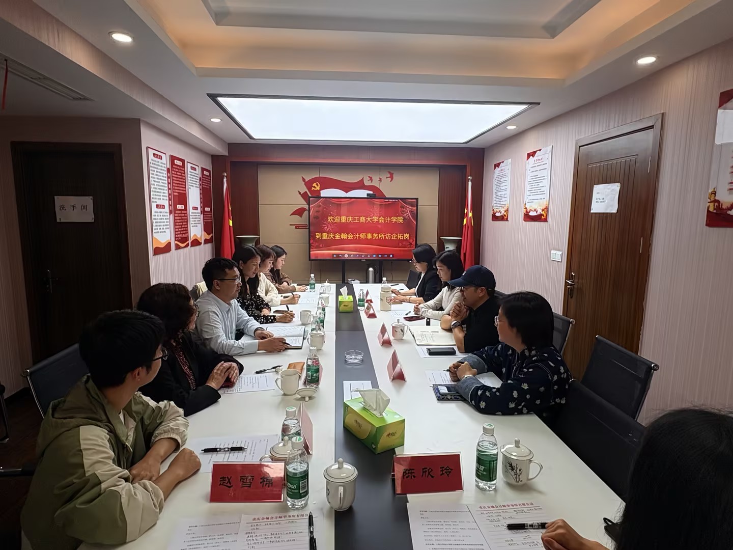 为推动本、研学生就业工作,深化产教融合、推进校企协同育人,2026年4月8日下午,重庆工商大学会计学院赴重庆金翰会计师事务所有限公司访企拓岗并开展研究生教育合作交流座谈会。