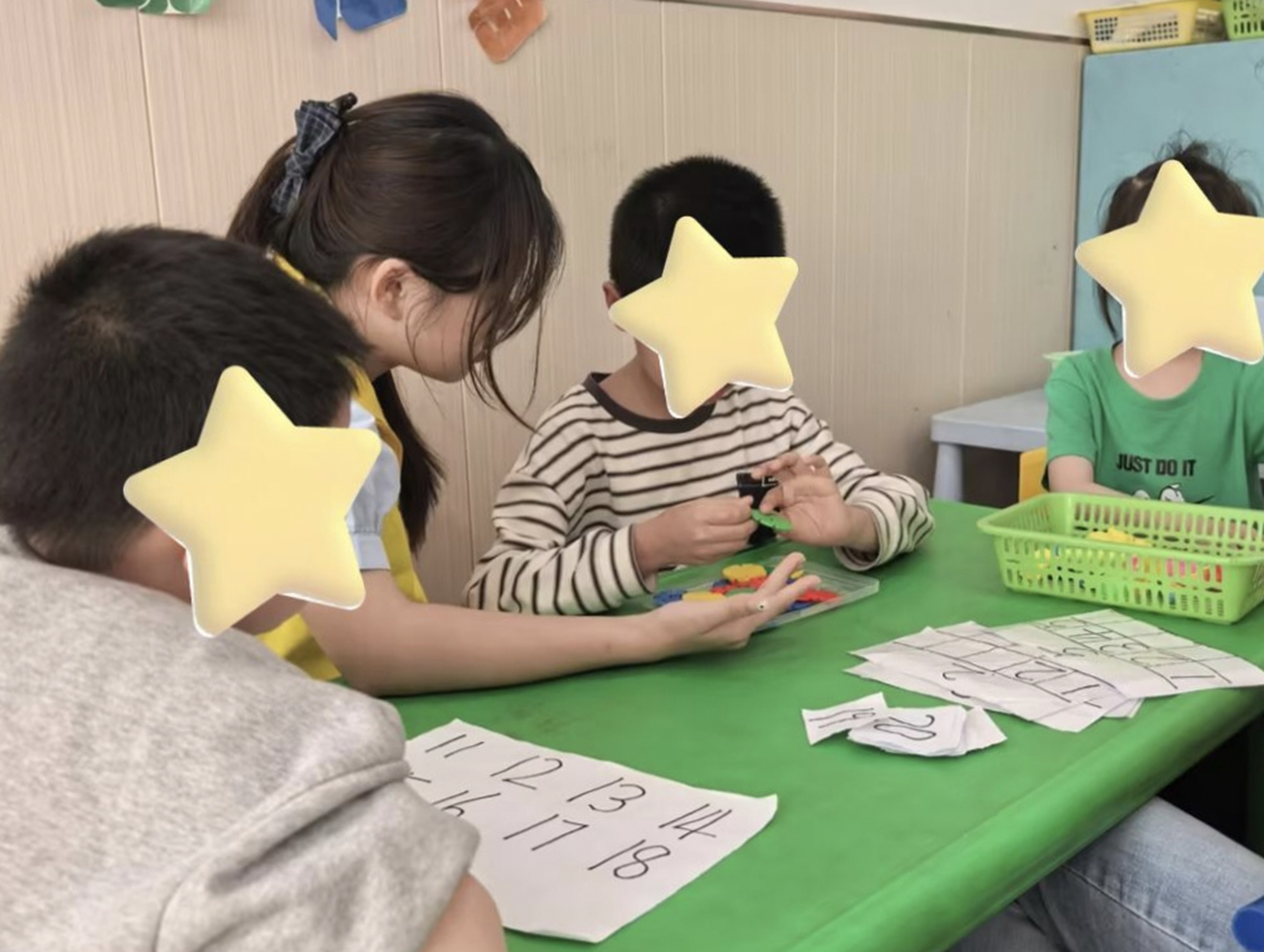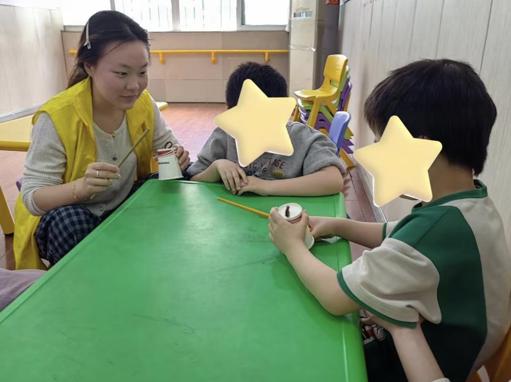 另一部分志愿者则陪伴孩子们开展趣味课堂与互动游戏。在认知认读环节,志愿者用生动形象的语言,耐心引导孩子们认识脖子、老鹰、麻雀、鸽子等事物,一边讲解一边互动提问,让孩子们在轻松氛围里加深理解、主动表达;在注意力训练课上,大家一起完成纸上图形转换练习,志愿者细心指导、及时鼓励,帮助孩子们专注完成任务,提升观察与动手能力;最后,志愿者陪着孩子们自由玩耍、轻松互动,现场满是欢声笑语,温暖又治愈。