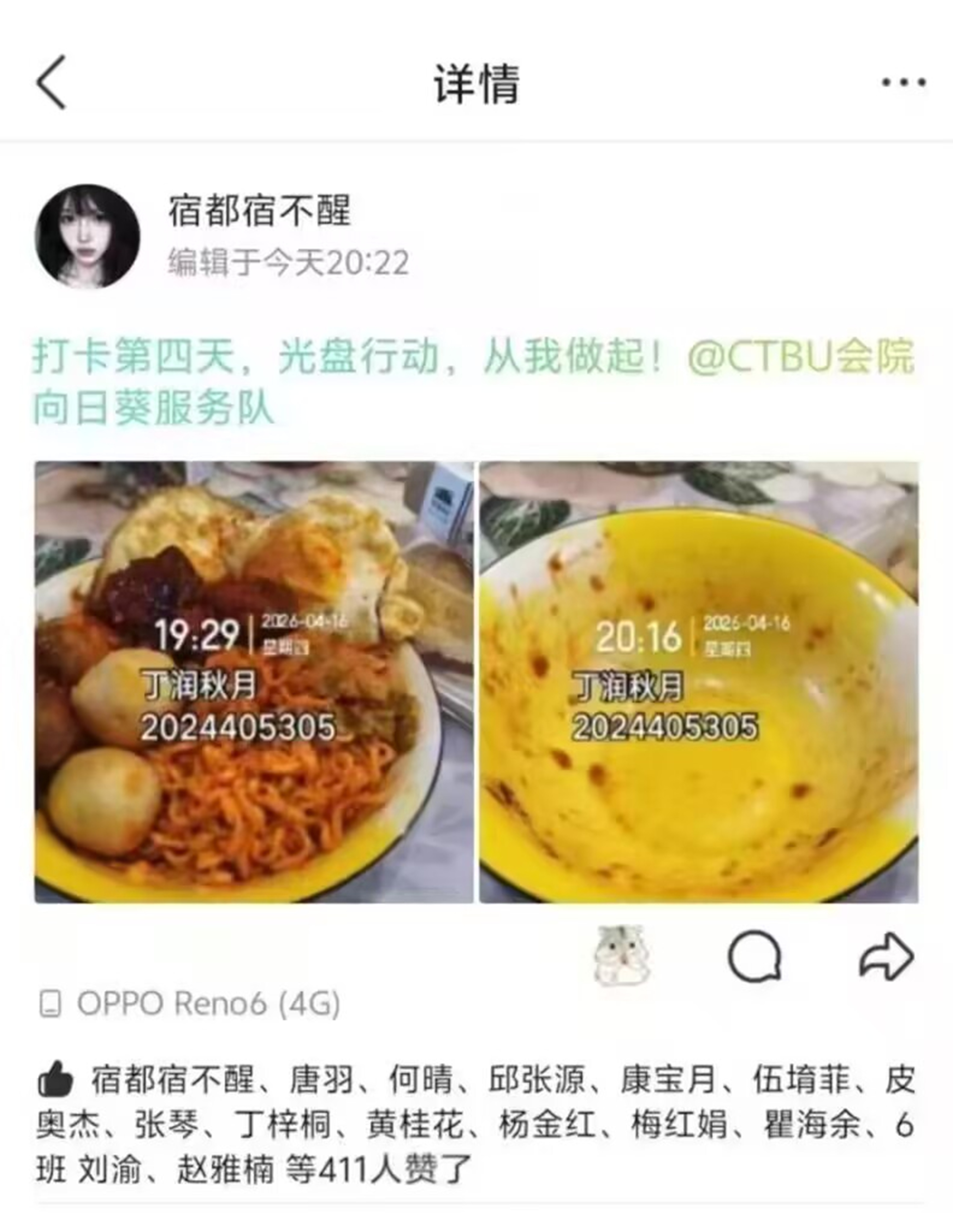 活动开展期间,同学们加入活动QQ群,每日通过线上小程序上传带有时间水印的餐前餐后对比照片与空间动态截图,标注打卡天数、分享光盘宣言,以实际行动践行节约理念。工作人员每日认真核对打卡信息,及时公示结果,全程提供答疑服务,保障活动公平有序、高效推进。