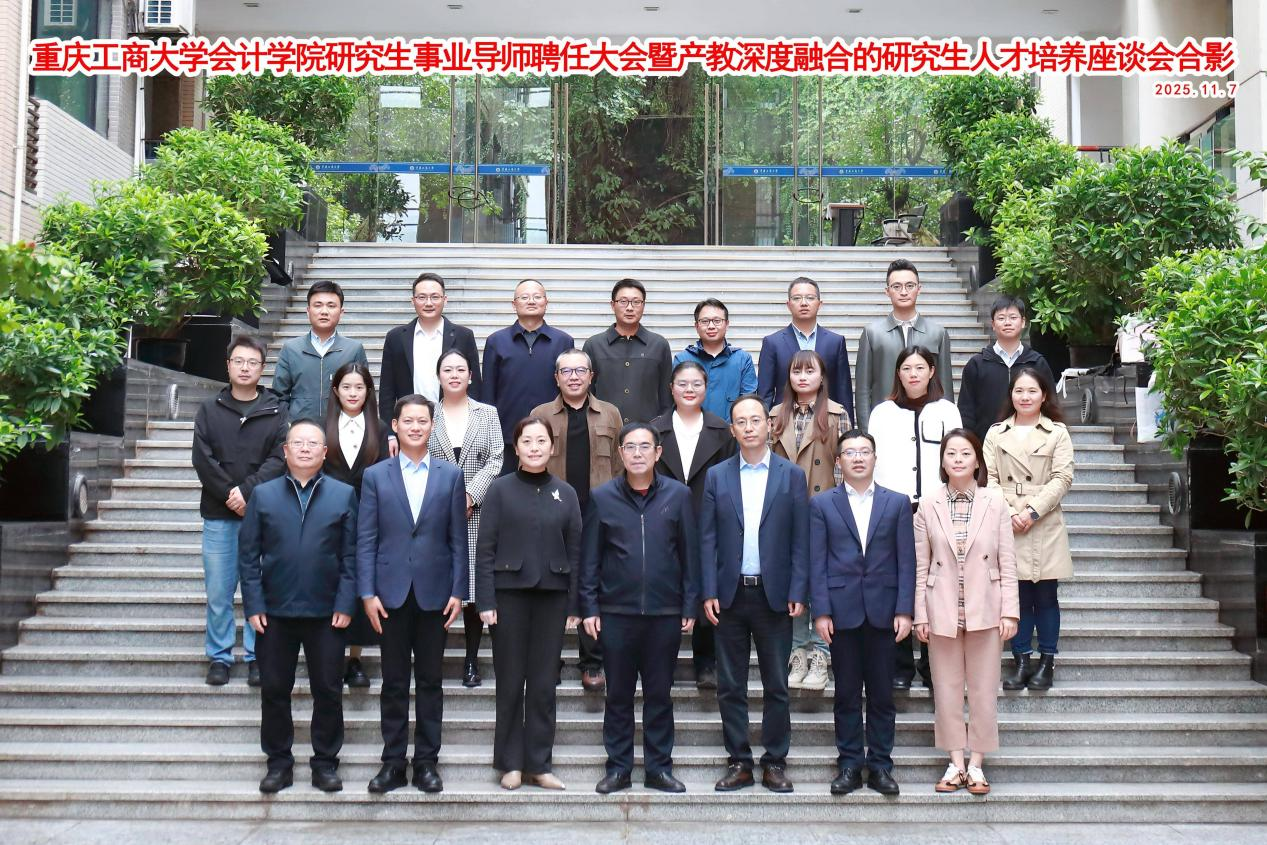 11月7日下午,重庆工商大学会计学院第十届研究生事业导师聘任大会暨产教深度融合人才培养模式座谈会在厚德楼3019会议室举行。校党委常委、副校长田双全,研究生院副院长曾胜,与会计学院党政班子、各系部负责人及新聘事业导师代表齐聚一堂,共话产教融合育人新篇章。会议由会计学院院长钟廷勇主持。