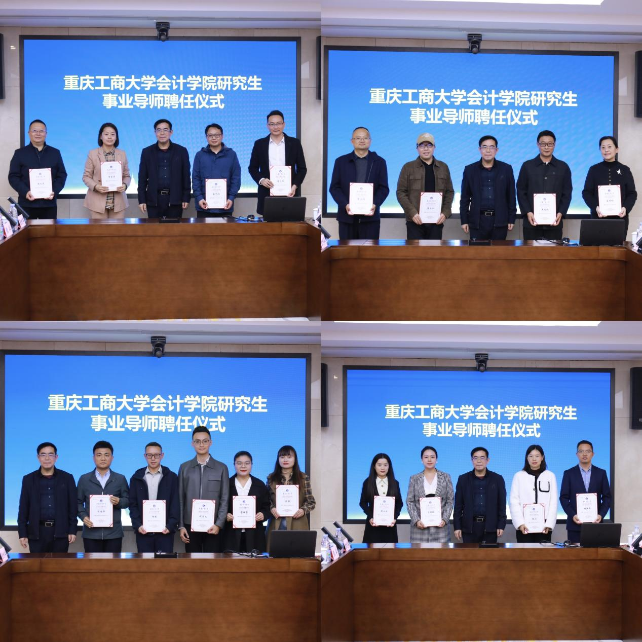 大会在庄重而热烈的气氛中启幕。钟廷勇院长首先代表学院向莅临指导的领导、嘉宾以及来自各行各业的精英导师们表示热烈欢迎和衷心感谢。他回顾了学院事业导师制度自设立以来,十年间在搭建协同育人平台、提升研究生实践创新能力方面取得的丰硕成果。在聘任仪式上,会计学院党委书记邓德敏宣读了《关于聘任李霞等30位同志为研究生事业导师的决定》。田双全副校长为与会的导师代表逐一颁发聘书,并与他们合影。浪潮通用软件有限公司重庆分公司总经理王宏波、重庆大华会计师事务所所长廖文均分别作为往届和新聘事业导师代表发言,分享了他们对协同育人的感悟与期待。